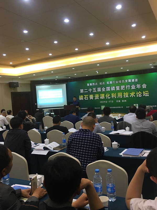 > 新聞動(dòng)態(tài) > 集團(tuán)新聞第二十五屆全國磷復(fù)肥行業(yè)年會(huì)于2018年4月25-27日在河南鄭州召開,山東先羅陳加印總經(jīng)理就磷石膏制備無水II型高強(qiáng)石膏新型建材技術(shù)路線的研究與應(yīng)用與業(yè)內(nèi)專家進(jìn)行技術(shù)交流。