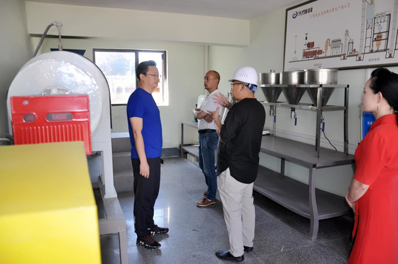 首先張濤董事長一行領(lǐng)導(dǎo)參觀了山東先羅的生產(chǎn)車間,在寬敞整齊的車間看了制作精良的設(shè)備,然后參觀了中小試線和實(shí)驗(yàn)室,對石膏粉生產(chǎn)線處理、