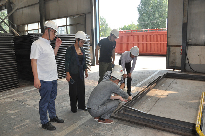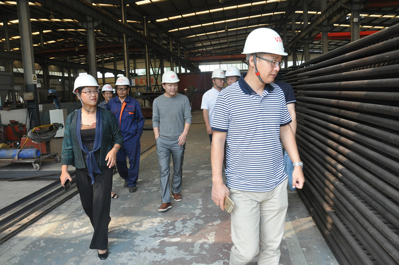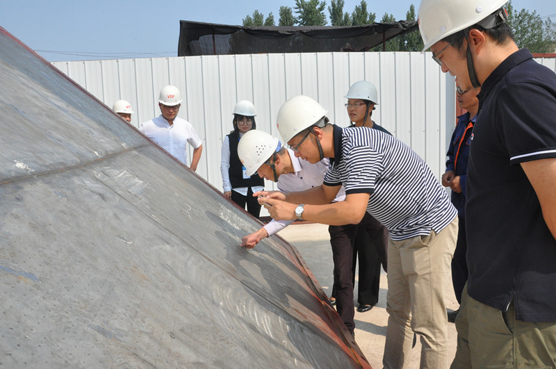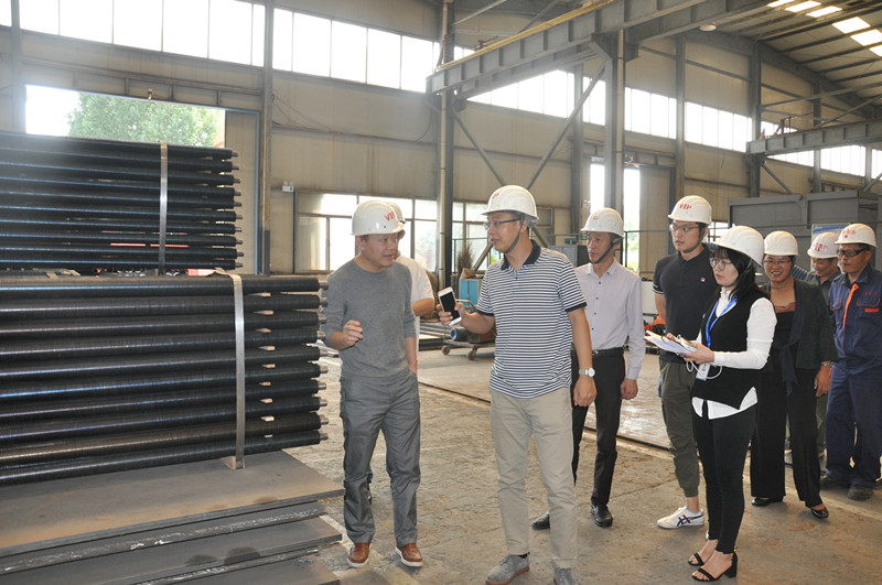 在山東先羅蔡總、李總、邱總和王總監(jiān)的陪同下,工作組成員實(shí)地參觀了建筑石膏煅燒設(shè)備沸騰換熱器制造車間,并與技術(shù)人員進(jìn)行討論。