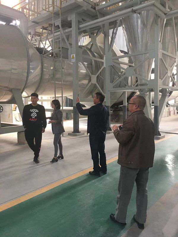 參觀由山東先羅承建的年產(chǎn)20萬噸脫硫石膏粉生產(chǎn)線