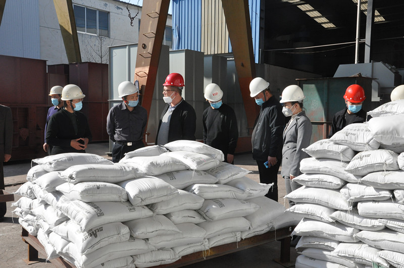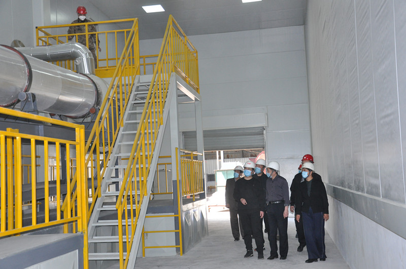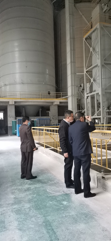 3月25日,領導們實地參觀考察了由山東先羅承建的年產20萬噸脫硫石膏粉生產線。