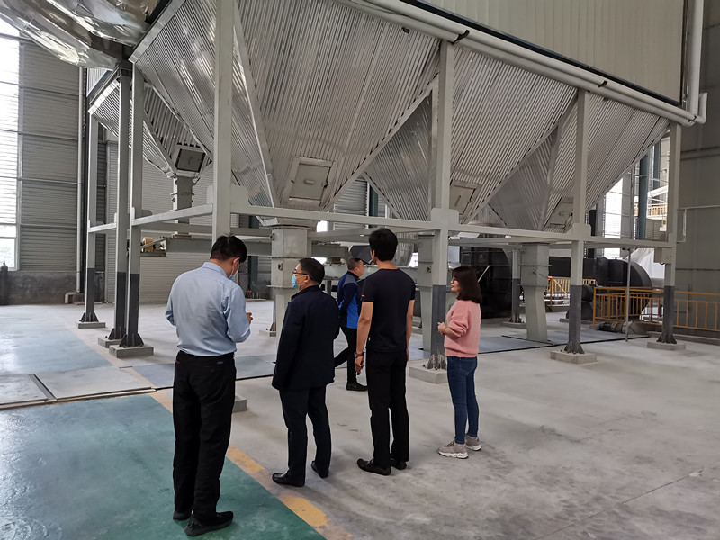 參觀由山東先羅承建的年產(chǎn)20萬噸脫硫石膏粉生產(chǎn)線