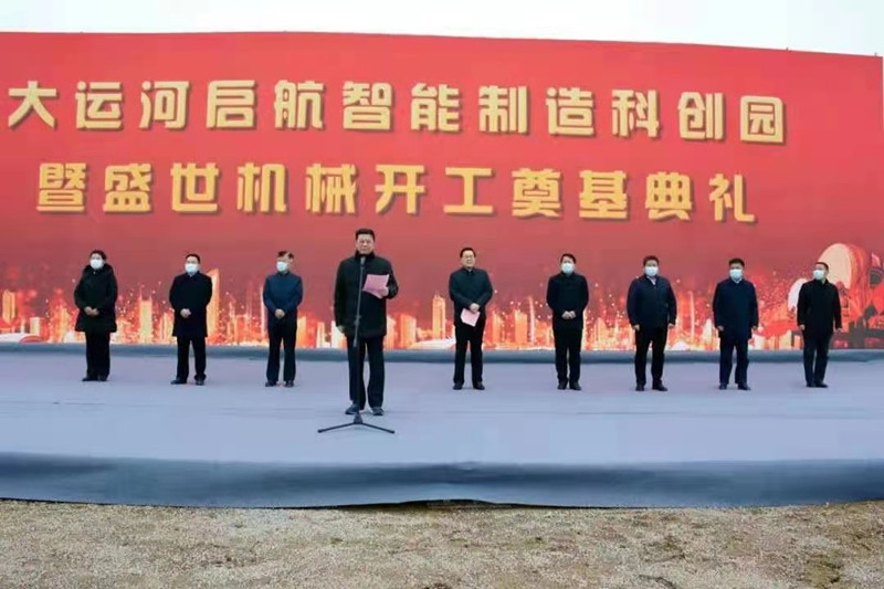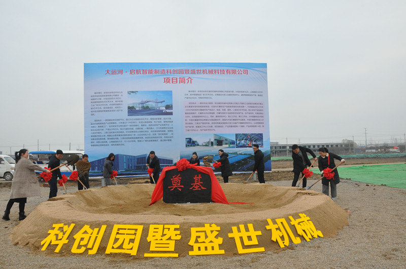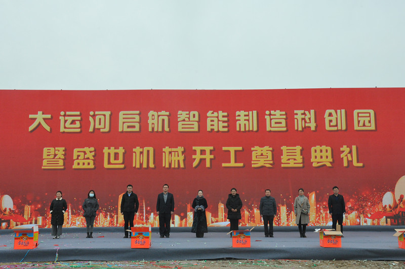 重點項目之一,上午11時18分,大運河啟航智能制造科創(chuàng)園暨盛世機械科技開工奠基儀式在棗莊市臺兒莊區(qū)重點