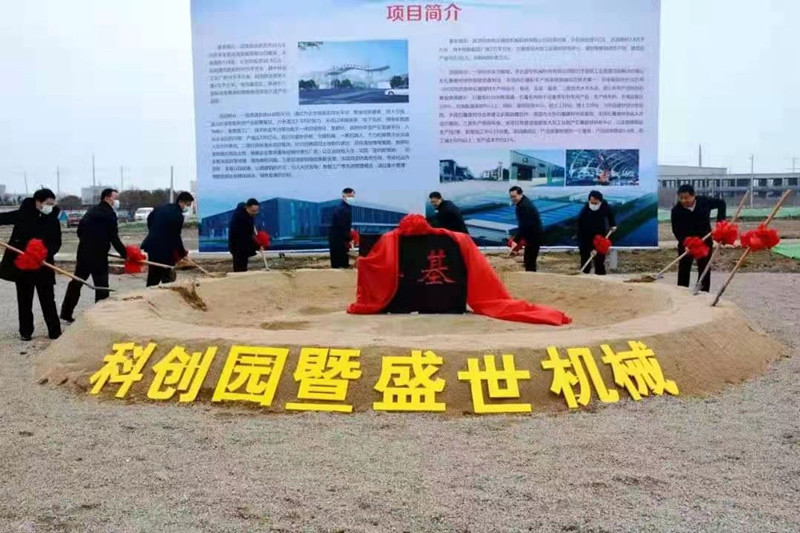 盛世各級領(lǐng)導(dǎo)移步到奠基池旁,手持金鏟,為盛世建材智能制造基地奠基培土,共祝棗莊盛世機械科技有限公司開