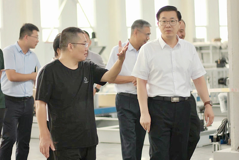 臺兒莊區(qū)開發(fā)區(qū)管委會主任孫殿鎮(zhèn)、區(qū)工信局局長趙作明陪同。山東先羅新型建材科技開發(fā)有限公司總經(jīng)理陳加印、副總